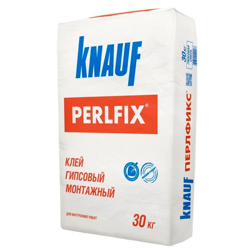 КНАУФ-Перлфикс - сухая монтажная смесь на основе гипса с полимерными добавками, обеспечивающими повышенную адгезию. Клей гипсовый предназначен для приклеивания гипсокартонных КНАУФ-листов (ГКЛ), изоляционных материалов (пенополистирольных и минераловатных плит) на кирпичные, бетонные, оштукатуренные основания стен с неровной поверхностью, для монтажа гипсовых пазогребневых плит (ПГП). Применяется для внутренних работ.
